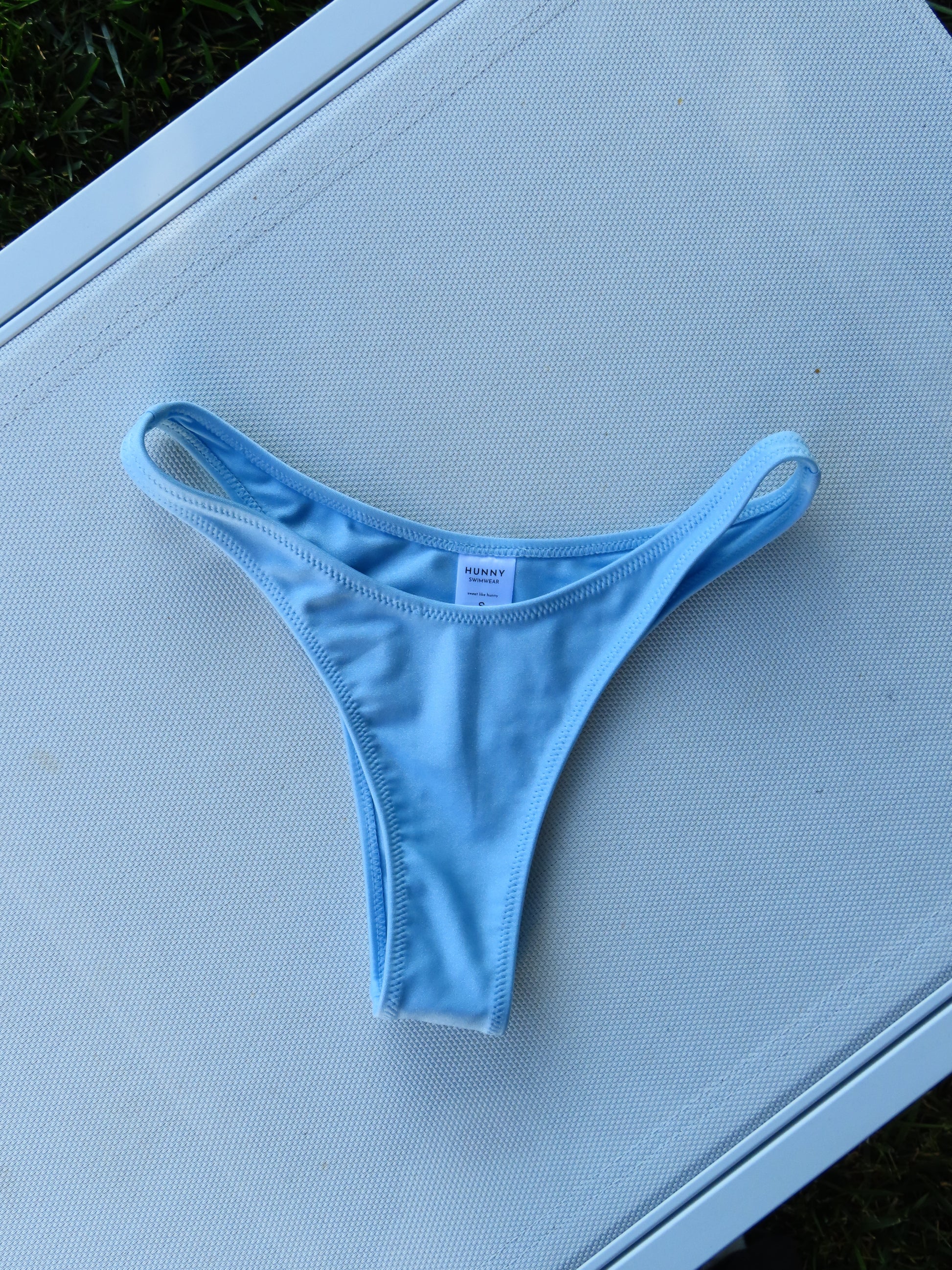 The sky blue bottom is our triple lined bikini bottom, designed to make you look and feel your best. These bottoms are designed with a high-cut fit to elongate your legs, adding both simplicity and comfort to your set. These bottoms offer just the right amount of coverage, ranging from medium to cheeky.